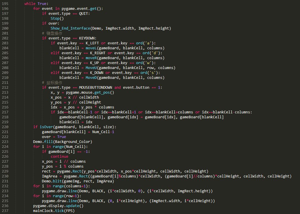 将图像分为m×n个矩形块,并将图像右下角的矩形块替换为空白块后,将这些矩形块随机摆放成原图像的形状。游戏目标为通过移动非空白块将随机摆放获得的图像恢复成原图像的模样,且规定移动操作仅存在于非空白块移动到空白块。