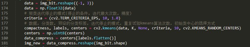 其次将原图像的颜色数量通过K均值聚类降低到指定的数量,K值越大,运行速度越慢,但效果越佳: