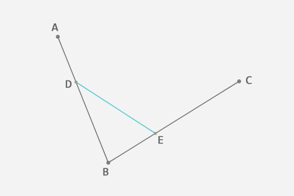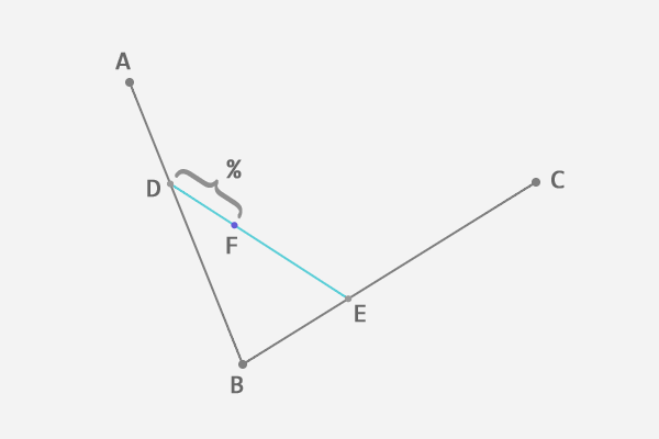 保证AD,AB,BE,BC,DF,DE之间的比例关系不变,让D点从A点运动到B点,则所有的点F构成的曲线即为二阶贝塞尔曲线: