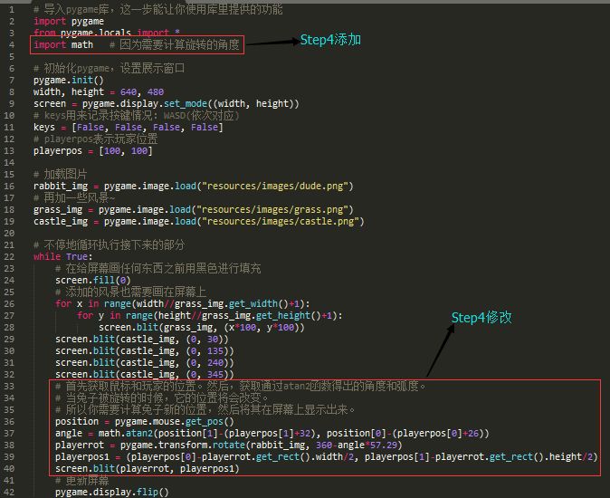 好的,现在你的兔子在你按键的时候可以移动了,但是如果你能用鼠标让兔子朝向你选择的方向不是更酷吗?这样它就不会总是朝向一个方向了。