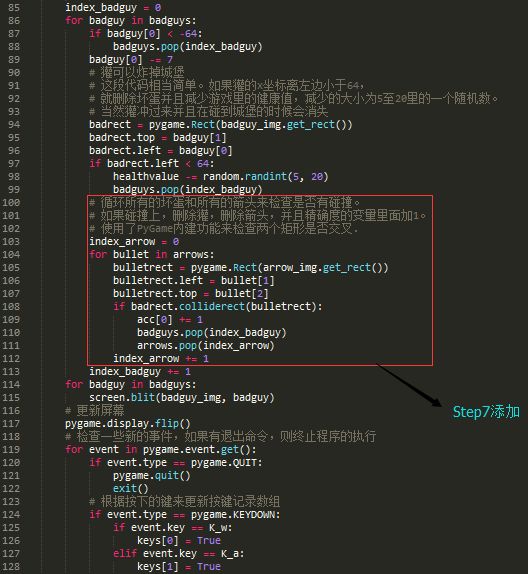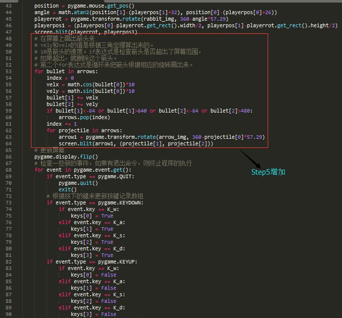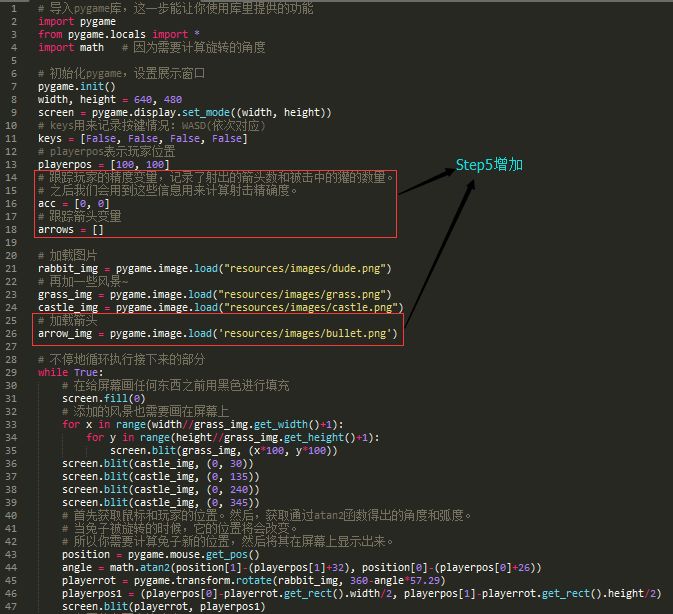 让兔子用箭头射向它们的敌人,这一步会有一点复杂,因为你需要跟踪所有的箭头,更新它们,旋转它们,在它们跑出屏幕的时候删除它们。