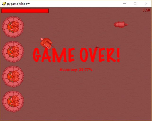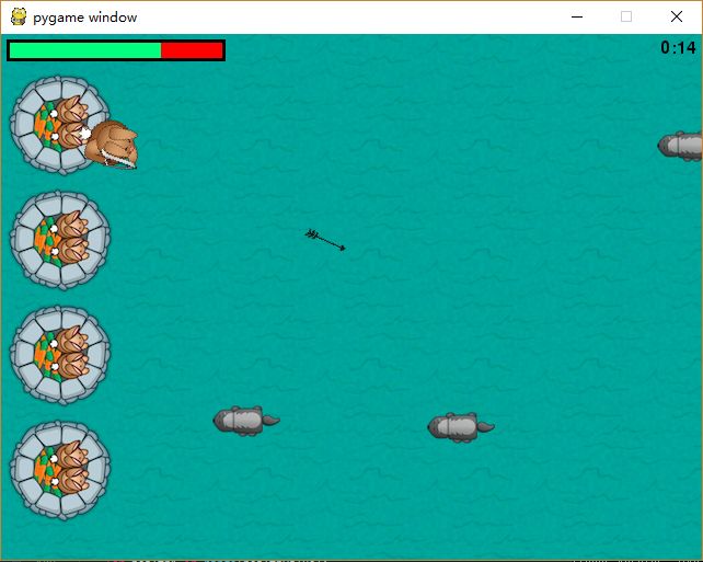 如果你玩的时间够长,即使你的生命值已经变成0了,游戏仍然是继续的!不仅如此,你仍然可以用箭头射向这些獾。这肯定不太对。你需要加上一些赢或者输的情况来让你的游戏值得玩。