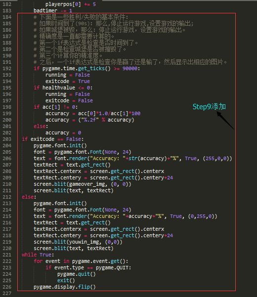 那么我们来加上胜利或者失败的条件。你可以通过终止主循环,进入胜利/失败的循环来实现它。你需要指出玩家是否胜利,并将其显示在屏幕上。