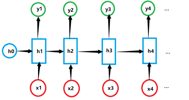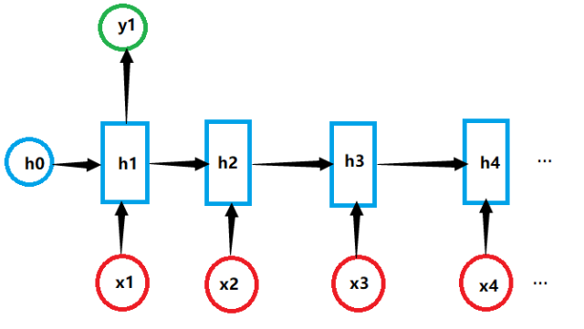 原始的神经网络并不能很好地处理序列形的数据,于是救世主RNN出现了,它引入了隐状态h的概念,利用h对序列形的数据提取特征,接着再转换为输出。下面详细说明一下其计算过程(下图中的h0为初始隐藏状态,为简单起见,我们假设它是根据具体模型而设置的一个合理值):