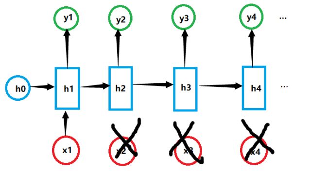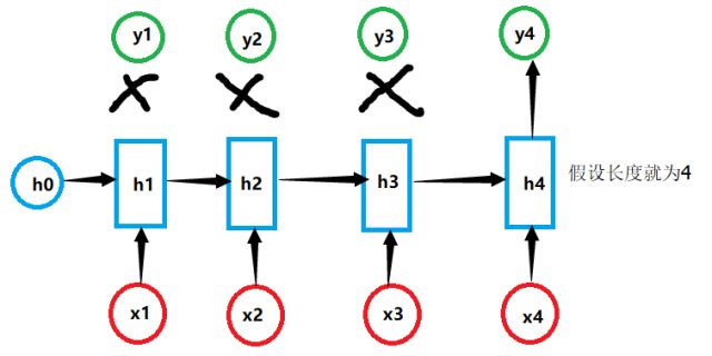 假设我们的问题要求我们输入的是一个序列,输出的是一个单独的数值。那么我们只在最后一个h上进行输出变换就可以了: