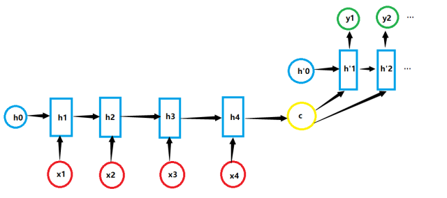 Seq2Seq结构先将输入数据编码成一个上下文量c: