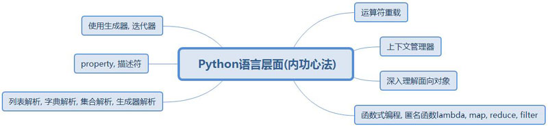 不过为了更好地进阶,你还需要学习Python语言层面的,通俗来说,这个就是内功,不多废话,直接上导图:
