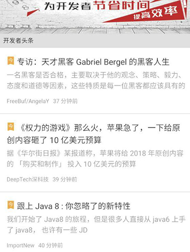 另外,他们对于开发者头条也非常关注。因为互联网每天都有新事物出现,需要跟上时代的步伐。例如zijiebao app阅读代码和开发者头条。
