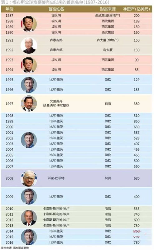 附:1987到2016年世界首富榜单。历年福布斯世界富豪榜