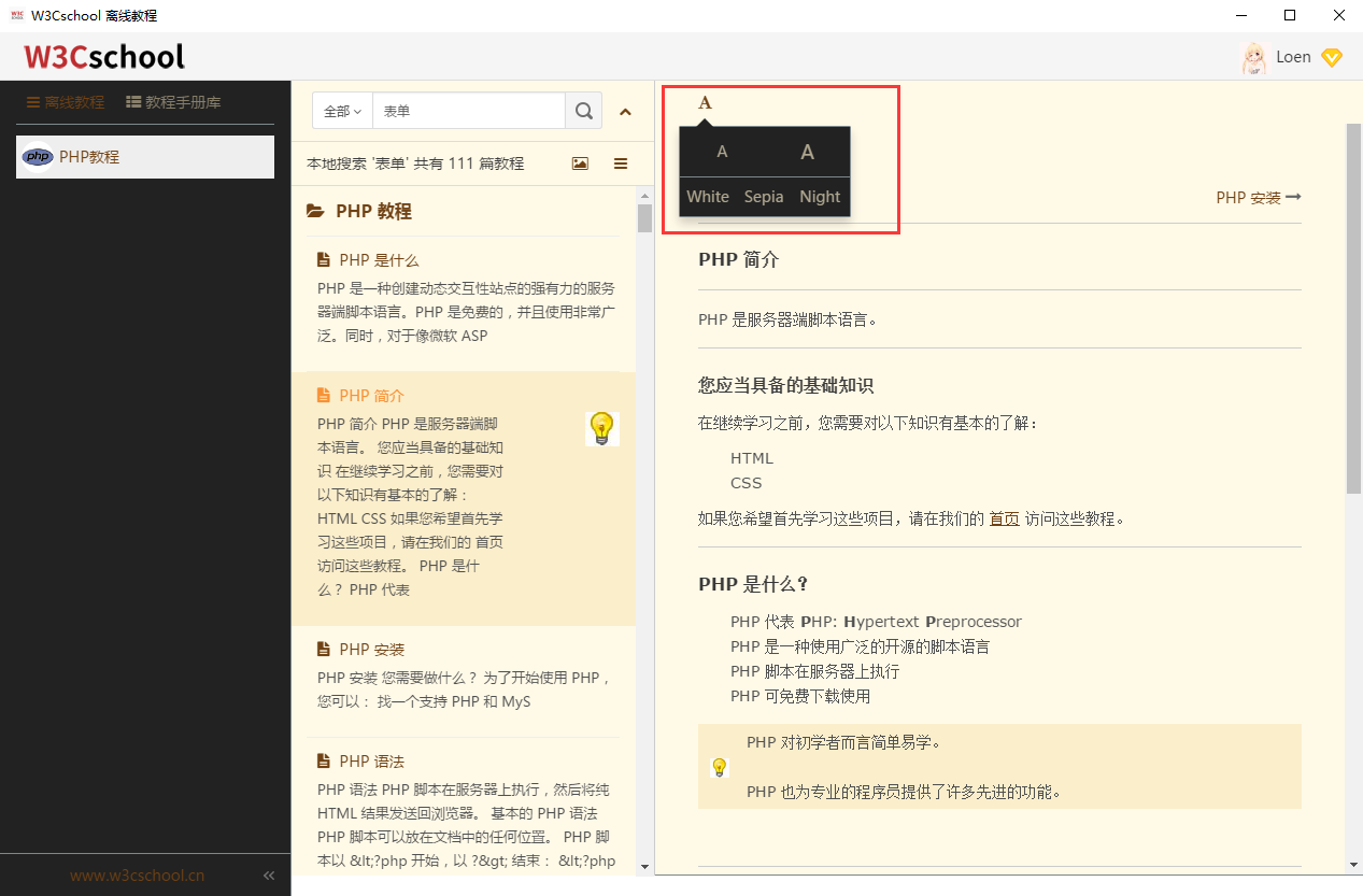 很感谢热心的用户们提了很多很棒和很忠恳的建议,并对软件中出现的问题给予非常多的大度与包容. W3Cschool PC版 v1.6.0 对用户提的次数比较多的几个地方进行改进,