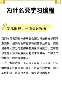 随着技术的快速发展,计算机和互联网已经渗透到我们生活的方方面面。编程作为一种通用的数字语言,使得人们能够与计算机交流,控制它们的行为,创造出各种各样的软件、应用程序和解决方案。掌握编程技能意味着能够在数字世界中自由地表达和创新。