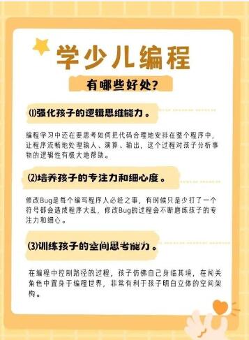 10. 安全上网习惯:教育孩子如何安全地使用互联网,包括个人信息保护和网络安全意识。 在选择具体的编程活动和工具时,应考虑孩子的兴趣和学习风格,确保编程教育既有趣又有教育意义。此外,重要的是要保持耐心,因为每个孩子的学习速度和兴趣点都不同。通过游戏化学习和实践项目,孩子们可以在没有压力的环境中探索编程的世界。