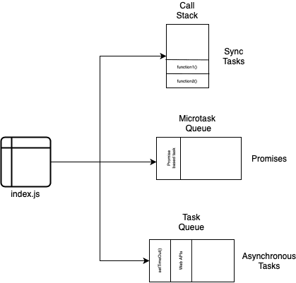 在最抽象的意义上,Javascript 基本上会将同步任务和异步任务分组,并将它们分开排队。