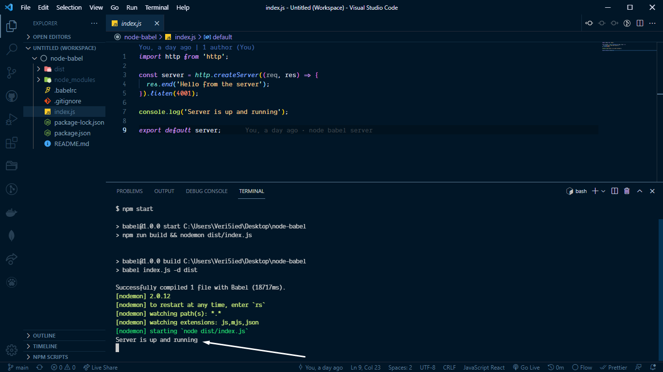 你可以在这里找到示例代码:https : //github.com/Veri5ied/node-babel