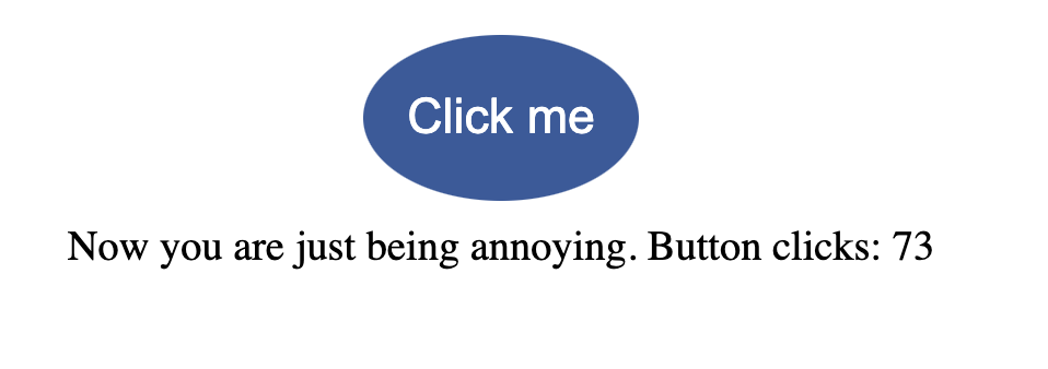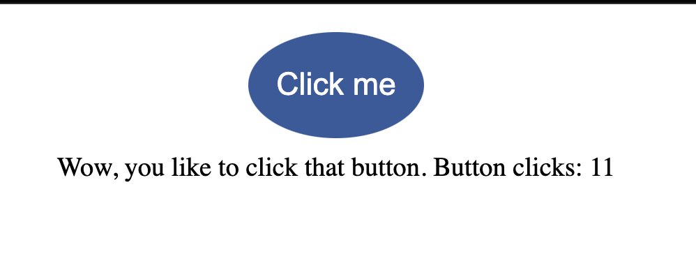 在此示例中,当用户单击按钮时,将显示一条消息,其中包含用户单击的次数。当计数达到某个阈值时,消息会随着计数的增加而改变并变得更加明显。
