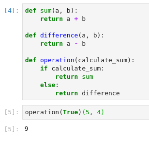 Python 也支持高阶函数(返回函数或将函数作为参数的函数)。例如,该operation