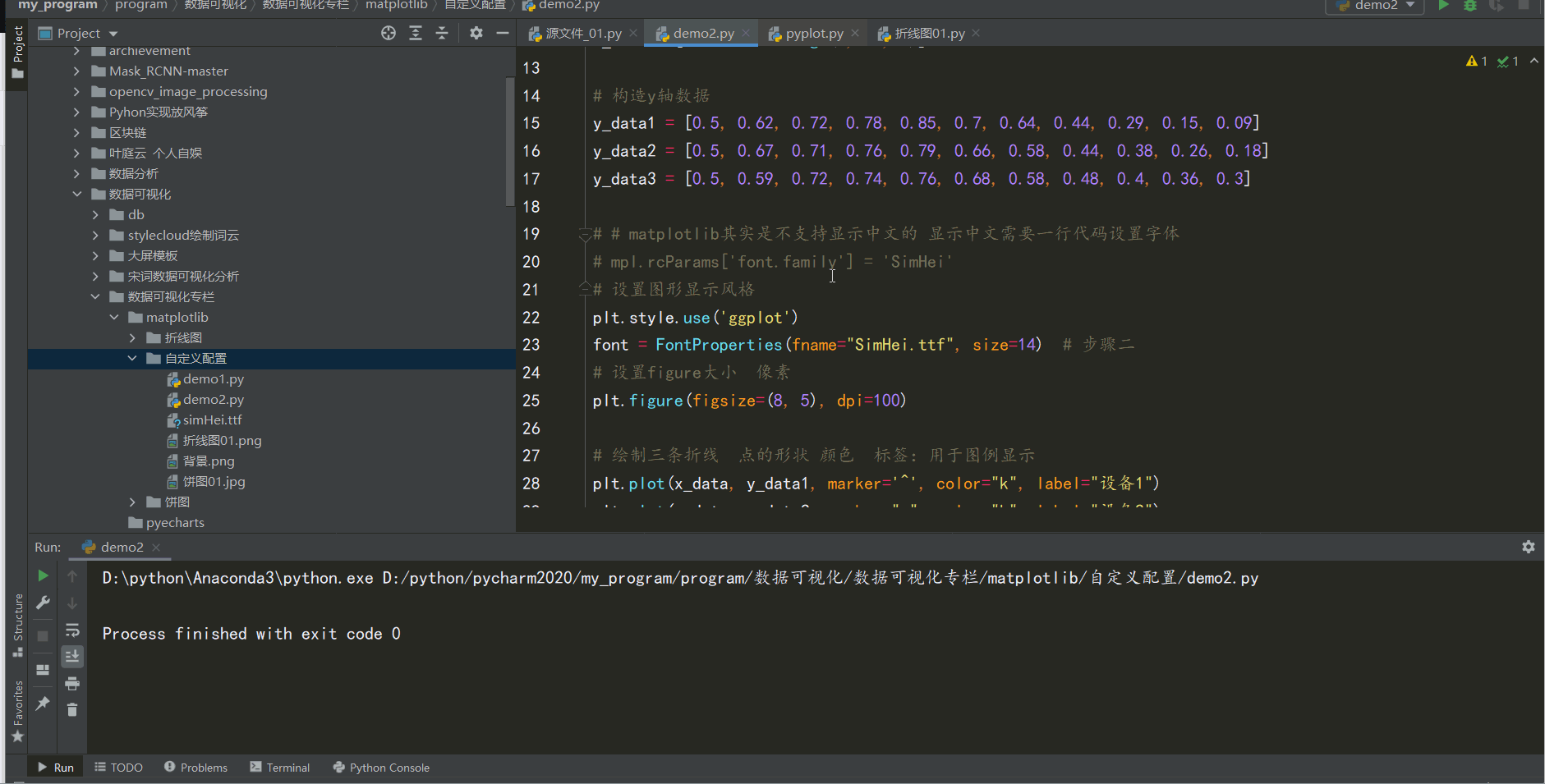 # matplotlib其实是不支持显示中文的 显示中文需要一行代码设置字体 mpl.rcParams['font.family'] = 'SimHei' plt.rcParams['axes.unicode_minus'] = False # 步骤二(解决坐标轴负数的负号显示问题)