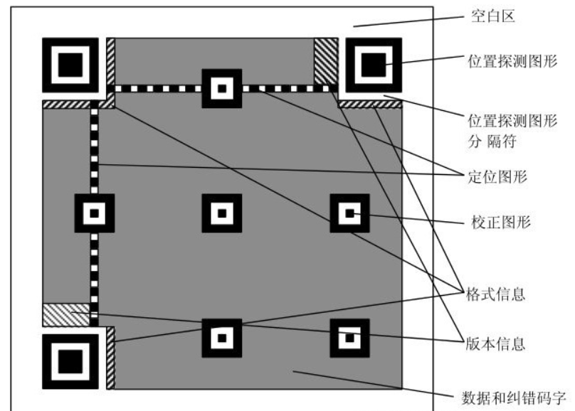 常见的二维码为QR CodeCode,QR全称是Quick Response,是一个近几年来移动设备上超流行的一种编码方式。它的结构如下: