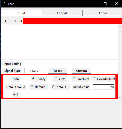 tk.Radiobutton(clockSet, text="1'b0", variable=initalValue, value="1'b0").grid(row=0, column=1, padx=5)