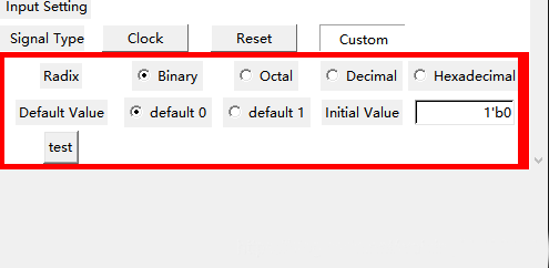 # Tpye: 0 --> clock; 1 --> reset; 2 --> custom