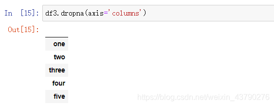 axis: axis参数默认为0('index'),按行删除,即删除有空值的行。将axis参数修改为1或‘columns',则按列删除,即删除有空值的列。在实际的应用中,一般不会按列删除,例如数据中的一列表示年龄,不能因为年龄有缺失值而删除所有年龄数据。