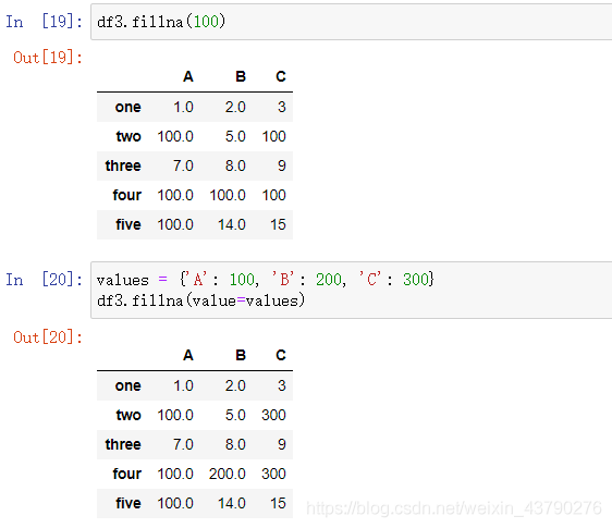 其实replace()函数已经可以用于缺失值的填充处理了,直接一步到位,而不用先替换成空值再处理。当然,先替换成空值,可以与空值一起处理。