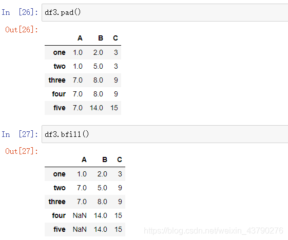 除了可以在fillna()函数中传入method参数指定填充方式外,Pandas中也实现了不同填充方式的函数,可以直接调用。