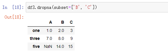 subset: 删除空值时,只判断subset指定的列(或行)的子集,其他列(或行)中的空值忽略,不处理。当按行进行删除时,subset设置成列的子集,反之。