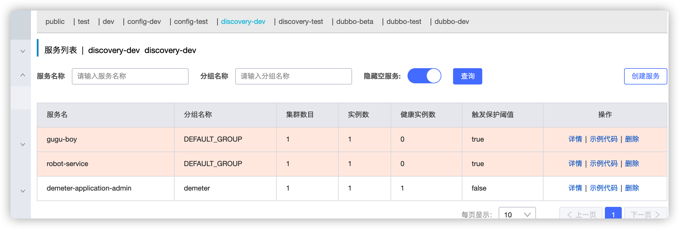 # ============== nacos-discovery ============== # spring.cloud.nacos.discovery.server-addr=127.0.0.1:8848 spring.cloud.nacos.discovery.username=nacos spring.cloud.nacos.discovery.password=nacos spring.cloud.nacos.discovery.namespace=discovery-dev spring.cloud.nacos.discovery.group=demeter