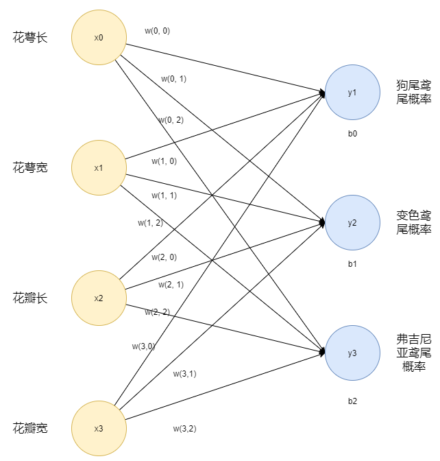 所以只要给出足够多的鸢尾花花萼、花瓣数据,以及对应种类,使用合适的神经网络训练,就可以实现鸢尾花分类。