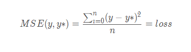 损失函数表达的是预测值(y*)和真实值(y)的差距,我们采用均方误差公式作为损失函数。