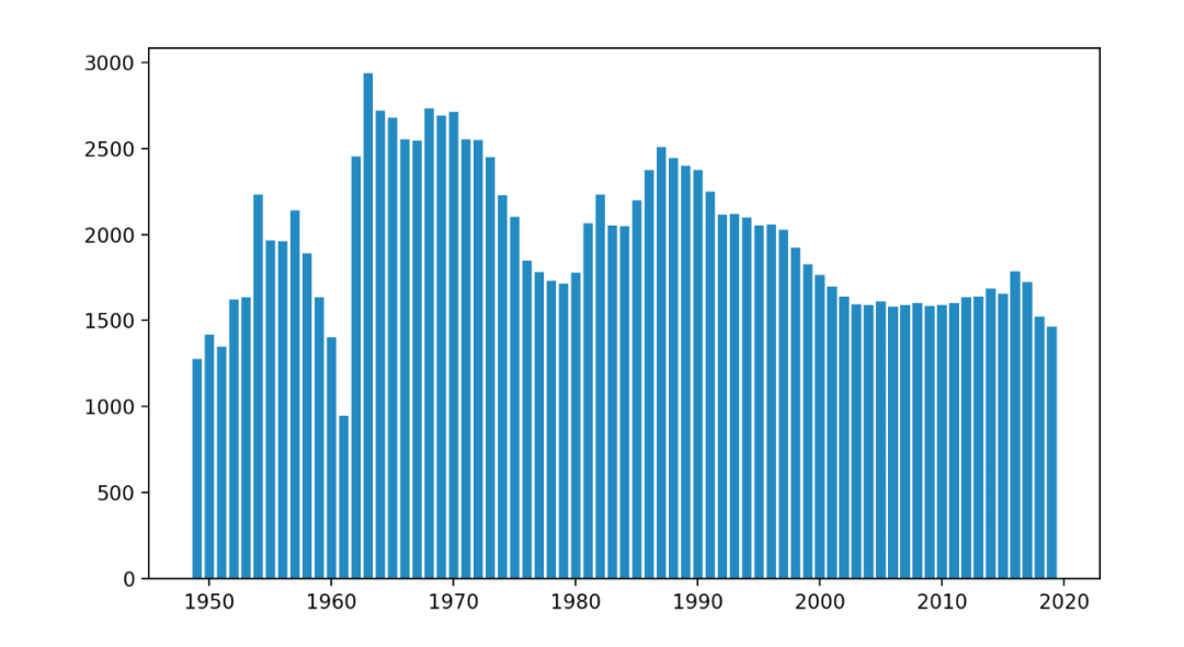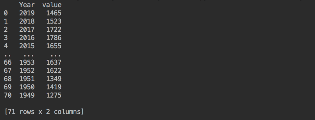 使用到的是我国1949到2019年,历年的出生人口数据,数据来源国家统计局。