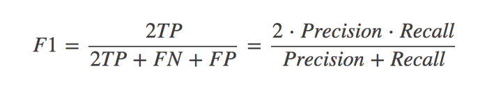 F1 = 2*recall*precision/(recall+precision)