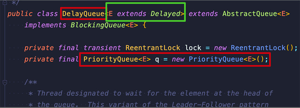 上图绿色框线也告诉你,DelayQueue 队列的元素必须要实现 Depayed 接口: