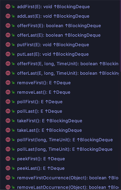 至于为啥插入和移除这么多种单词表示形式,我也不知道,为了方便记忆,只需要记住阻塞的方法形式即可: