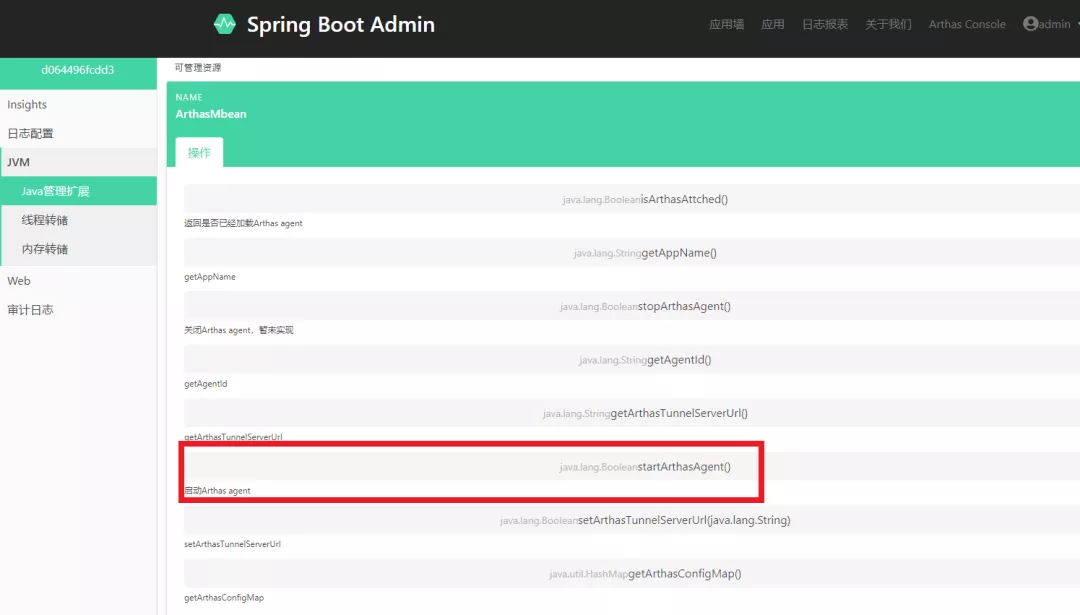 在调研期间,Arthas 整体版本为 3.4.5,提供了基于 Webconsole 的 Tunner Server 模式,通过前面链接文章已经实践,与SBA已经可以实现集成。因为项目本身没有历史包袱,在实际集成的过程中采用了 SBA 2.0 版本以提供更多的管理功能和图形界面能力。其他优点:
