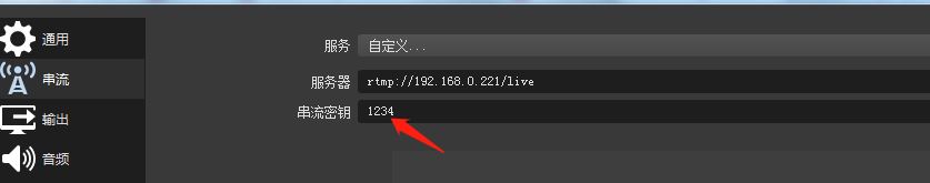 1.首先通过obs进行推流,服务器是:rtmp://192.168.0.221/live,串流密钥:1234,