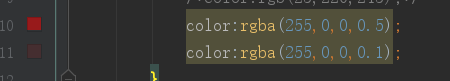 注:CSS3才推出来的一种格式,其中最后的字母a其实就是代表透明度,最大为1,最小为0,值越小越透明
