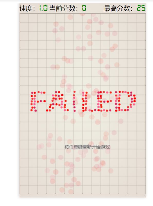上面初始化了一个stage,用于存放特效,一个textstage,用于形成“FAILED”的像素图片。还有一个按任意键重新游戏的提示。同时开始每隔一段时间就刷新stage。